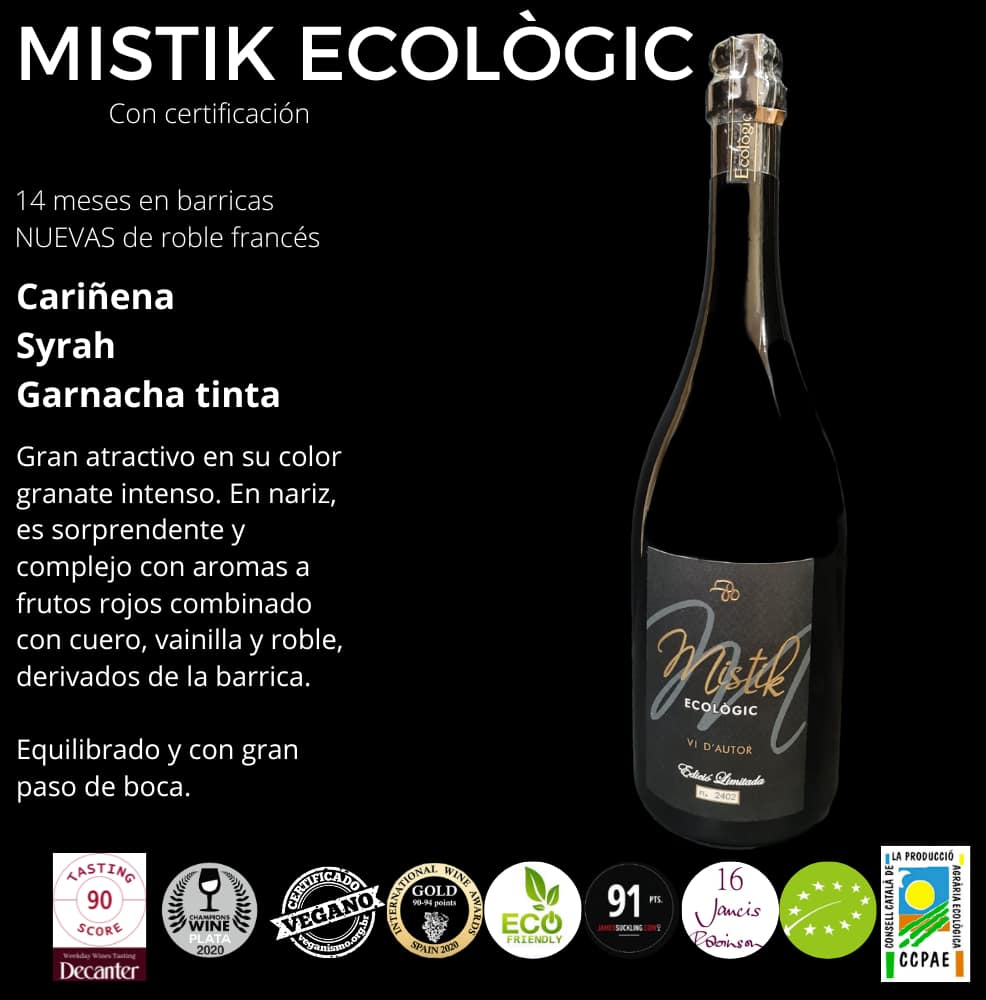 Le presentamos nuestra tercera bodega sin DO, donde elaboramos los vinos de autor con certificación ecológica, vegana y de venta de proximidad. Además, esperamos tener en breve la certificación biodinámica. Por eso presentamos nuestros vinos Mistik Ecológico con certificación. Todo el proceso de embotellado y etiquetado es manual. Producciones muy limitadas. Por eso todas las botellas son numeradas. Trabajamos con el máximo cuidado en nuestras instalaciones.